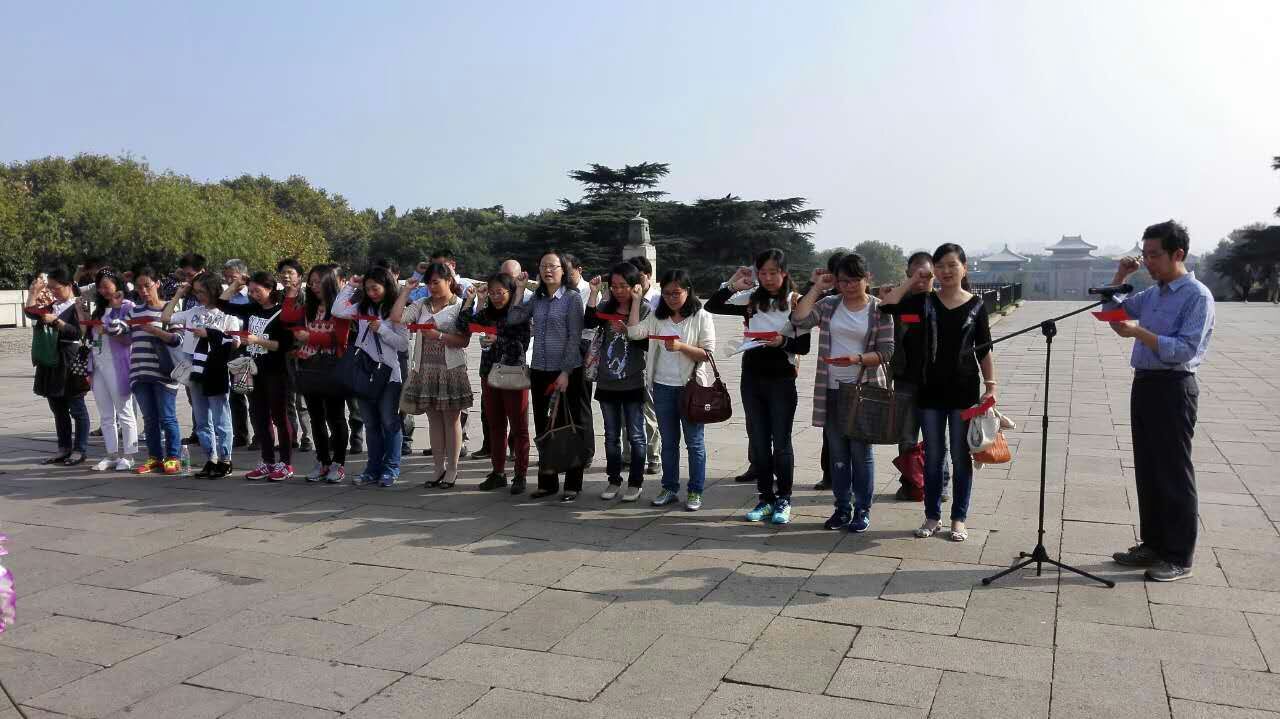 2015年10月23日下午,公司党委以“缅怀革命先烈, 弘扬革命传统,践行‘三严三实’”为主题,组织了40余名学院教职工党员赴雨花台烈士陵园开展主题党日活动。在缅怀雨花英烈的同时,学习他们“信仰至上、对党忠诚、舍生为民、勇于担当”的精神,继承和弘扬革命先辈的光荣传统,努力践行“三严三实”。