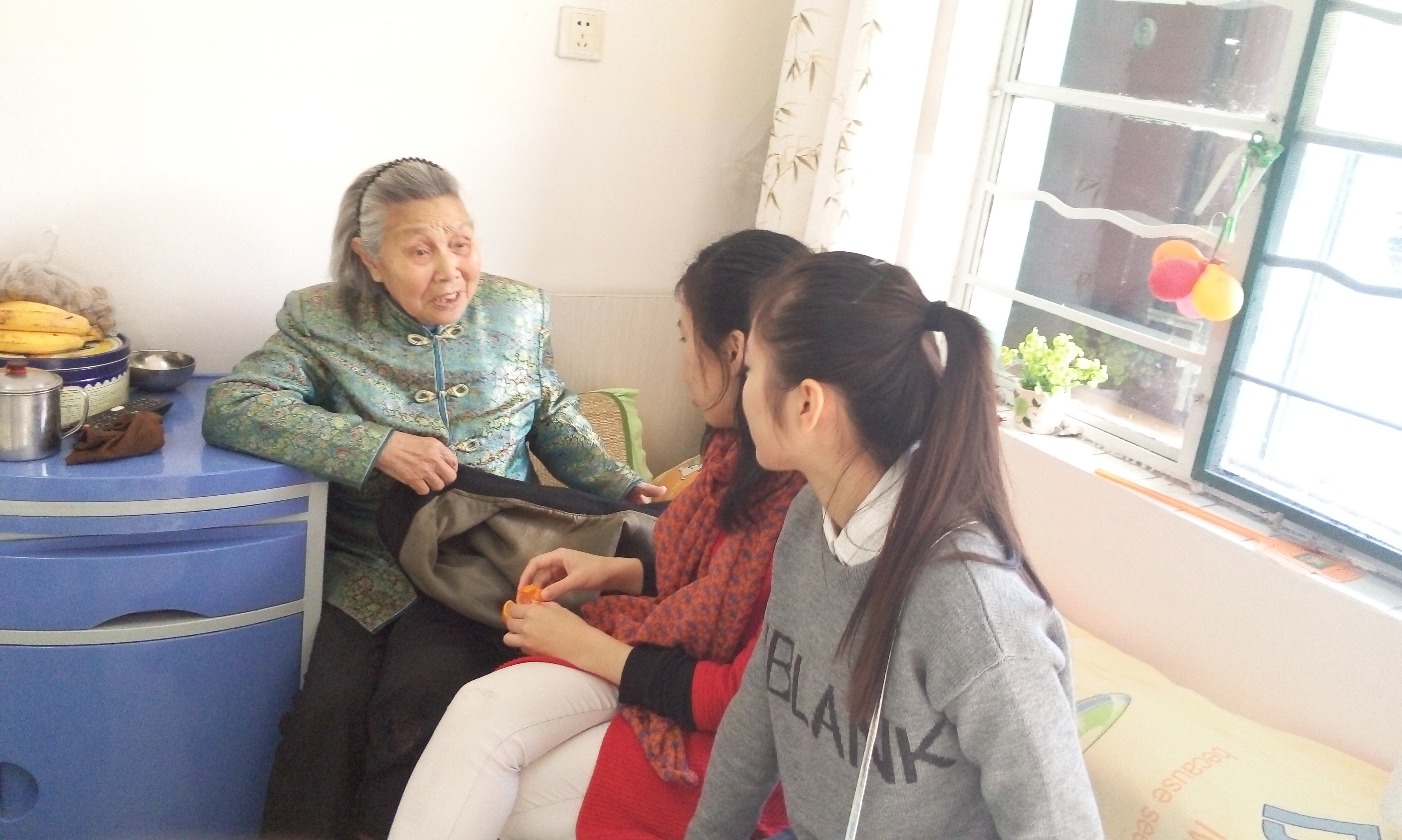11月15日八点半,一行人准时到达敬老院,首先大家熟悉了环境,和副经理交流了商量了注意点。随后,分成小组,帮助老人梳头捶背,打扫卫生,和老人聊天,下棋,教老人制作手工制品等。党员们还给老人带一些礼物:康乃馨和一些小盆景来装饰室内。老人们生活孤苦,还有一些老人害了眼疾,鲜花能够为他们带来温馨。在装饰的同时我们打扫内部卫生,为老人们晒晒被子,同学们忙的不亦乐乎。老人们在门外端着椅子与女生们聊天玩耍,女生们同时为老人捶背,梳头等;大家买来的香甜的水果也为老人们带来了滋滋的甜味。老人们感受到党和国家对他们浓浓的敬爱。大家也向老人们宣传我们党对于所有人群的关爱,宣传“从群众中来到群众”中去的根本宗旨和一切为了人民的群众路线。最后,党员与老人们合影留念。在回到学校之后党支部还积极举行了关于这次活动的座谈总结会议,参加的党员同志跟积极分子积极发言,交流这次活动的意义。