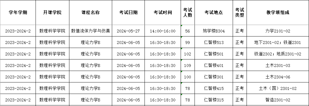 2023-2024-2力学系自排考试安排