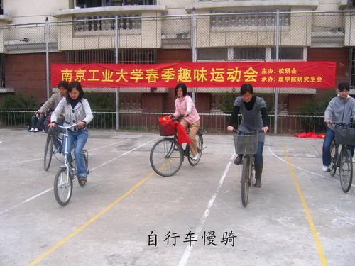本次运动会有包括公司在内的化学化工学院,材料学院,生工学院,土木学院,经管学院,信息学院,管理学院等8个学院近80位同学报名参加比赛。运动会共设自行车慢骑、定点投篮、双人绑腿跑、手掂排球和飞镖等五个项目,每个项目均分设男子组及女子组。大家的参赛气氛异常热烈,比赛当天的天气虽然不是太好,但并没有影响到参赛选手的热情,大家仍然非常开心的参加着每一个自己所报名的项目。第一个开始的项目是双人绑腿跑,这个项目是考验每对选手的协调性和默契程度。随着裁判一声令下,大家一齐向终点奔去,所有的选手没有一个因为双腿被绑在一起而摔倒,都很一致地快速向前跑,看来选手们都精心练习过,最终的冠军被理学院楚庆岩和杨海玉获得。