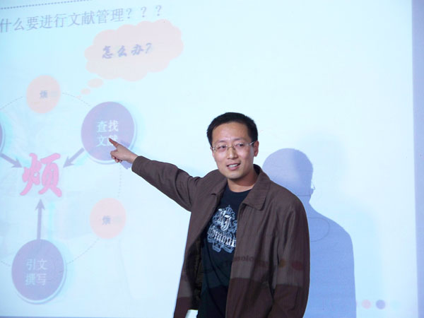 接着,理学院硕士李海林同学作了关于《课题研究与论文发表——实战心得》的报告,给予会的广大研究生新同学介绍了课题研究和论文发表的方法,并结合自己的发表8篇SCI的经历讲解了其中的重点和相关技巧。刘山博士作了关于《文献管理经典软件EndnoteX使用介绍》的报告,介绍了EndnoteX 文献管理数据库和相关使用方法,并结合实际给同学们作了现场演示。