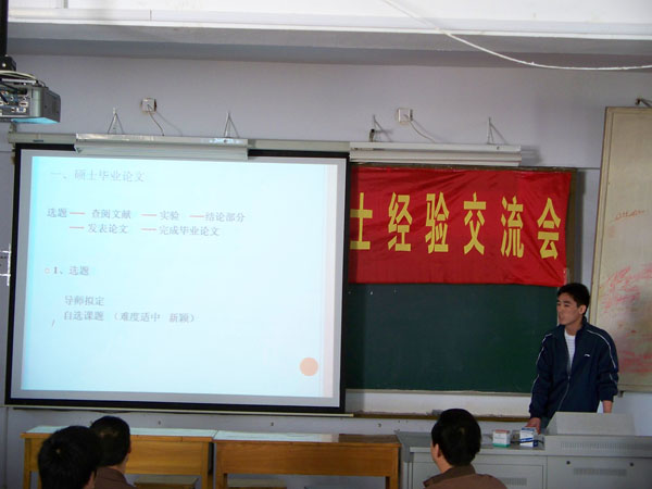 阅读次数: 发布时间:2008-10-28 更新时间:2022-03-0910月23日下午,理学院在丁家桥教学楼402教室隆重举行第二届博硕士研究生学习经验交流会。本次活动由理学院研究生会主办,在理学院学术部策划下完成,旨在加强研究生之间的学术交流,丰富科研经验,营造浓郁的学术氛围。