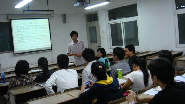 在党支部书记高海健的提议下,党员们开展了分组讨论。他们热烈讨论了吴老生平以及给自己带来的启发。接着各组代表上台将小组讨论的心得体会向支部各成员展示。同学们细心聆听,认真思考,并一丝不苟地做着记录。两个小时后,会议在党员们的掌声中结束。