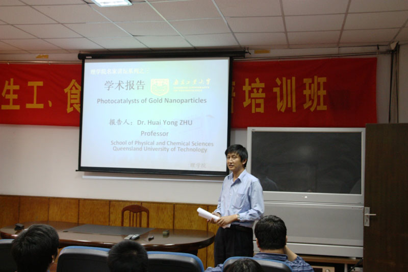 2009年10月28日下午3:00,应理学院邀请,澳大利亚昆士兰科技大学物理化学学院的朱怀勇博士在丁家桥教学楼215多媒体教室做了题为“Photocatalysts of Gold Nanoparticles”(金纳米粒的光催化)学术报告。