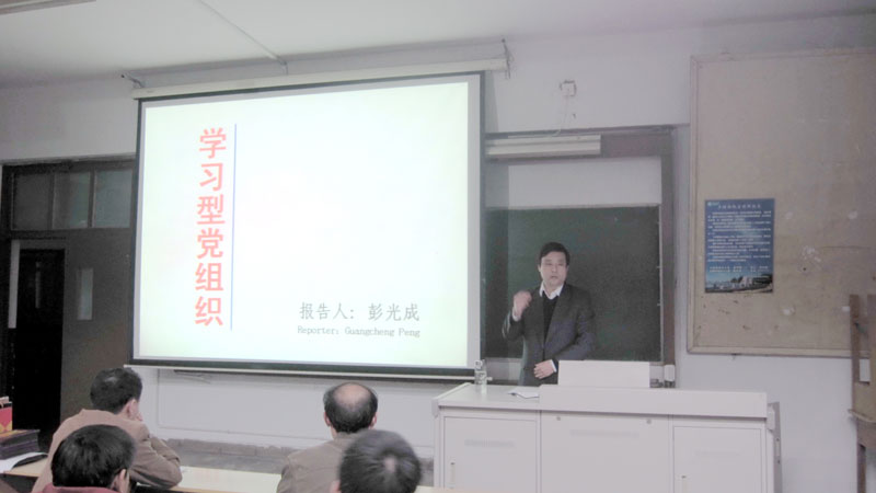理公司党委书记彭光成就学习型党组织是什么、为什么要建设学习型党组织、怎么建设学习型党组织、怎样做一名学习型党员等四个问题,从理论到实践,深入浅出地向大家作了报告。与会党员同志以饱满的热情,认真的态度听取了报告。大家感到收获颇多,启发很大。大家表示,为了学校教育事业的发展,也为了自身的学习进步和生存发展,一定认真地投入到建设学习型党组织和争做学习型党员之中。