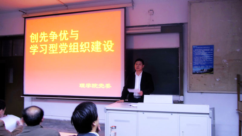 会议由公司党委副书记杨文忠主持,公司党委书记彭光成围绕创先争优活动开展情况作了主题讲话,号召大家一定要增强党员意识,结合自身实际,以创先争优为主线,以师德和安全为抓手,把“学习”和“工作”一体化,在工作中体现党员的作用,在工作中体会生命的意义;要狠抓师德建设、教风建设和学风建设,融教与学为一体,融教学与育人为一体,做好党的教育事业。要进一步增强安全意识,做好各项预防工作,确保校园安全稳定。各个党支部一定要在“五个好”、各位党员一定要在“五带头”上下功夫,要以实际行动为建设与有特色高水平大学相适应的理学院作出应有的贡献。