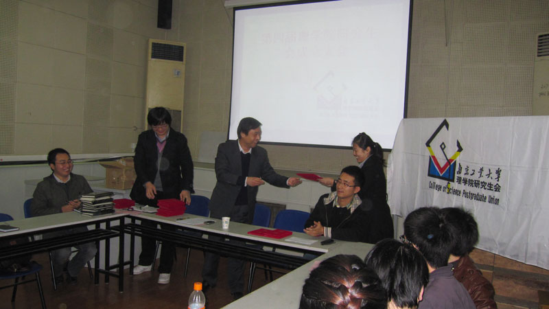 公司党委书记彭光成代表公司党委向理学院第四届研究生会的成立和当选研究生会员工干部的30名同学表示祝贺,为新当选研究生会主要干部的同学们颁发聘书,为被评为优秀研究生干部的同学颁发了荣誉证书。