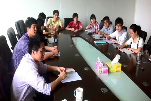 随后,大家简要回顾了创先争优“智慧墙”活动策划书的主要内容,进一步明确了活动的主题、背景、目的、意义、活动内容以及活动形式等。彭书记强调创先争优“智慧墙”活动一定要在轻松向上的氛围中进行,主持人的选拔和培训很重要,主持人须学习主持原则和方法。夏玚玚老师提出,探询过程中,全体与会者都要坚持民主平等、自由协商、一起思考和不加辩论。员工党员们感到,全体与会者事先一定要认真学习并遵守深度汇谈的规则和探询技巧,明确注意事项,活动才能卓有成效……