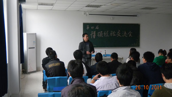 阅读次数: 发布时间:2011-10-30 更新时间:2018-12-072011年10月26日上午,理学院在江浦校区笃行楼316教室隆重举行第四届博硕士研究生学习经验交流会。本次活动由理学院研究生会主办,在研会组织部的策划下完成,旨在加强研究生之间的学习经验交流,丰富科研经验,营造浓郁的学术氛围。