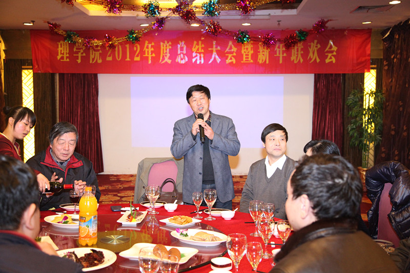 阅读次数: 发布时间:2013-01-21 更新时间:2018-12-072013年1月18日,理学院举行了2012年年终总结大会暨新年联欢会,大会第一阶段由理公司党委书记杨文忠同志主持。公司党委副书记高明出席会议并讲话,理学院领导班子及全体教师参加会议。