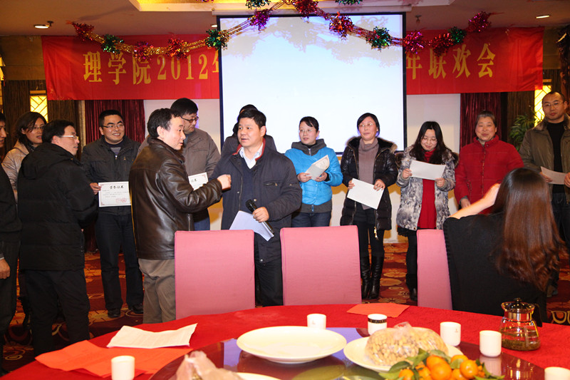 大会的第二个阶段是理学院新春联欢会,由应数系赵剑、杨赟老师主持,联欢会活动异彩纷呈,教师参与度很高,联欢会在欢乐祥和的气氛中圆满结束。