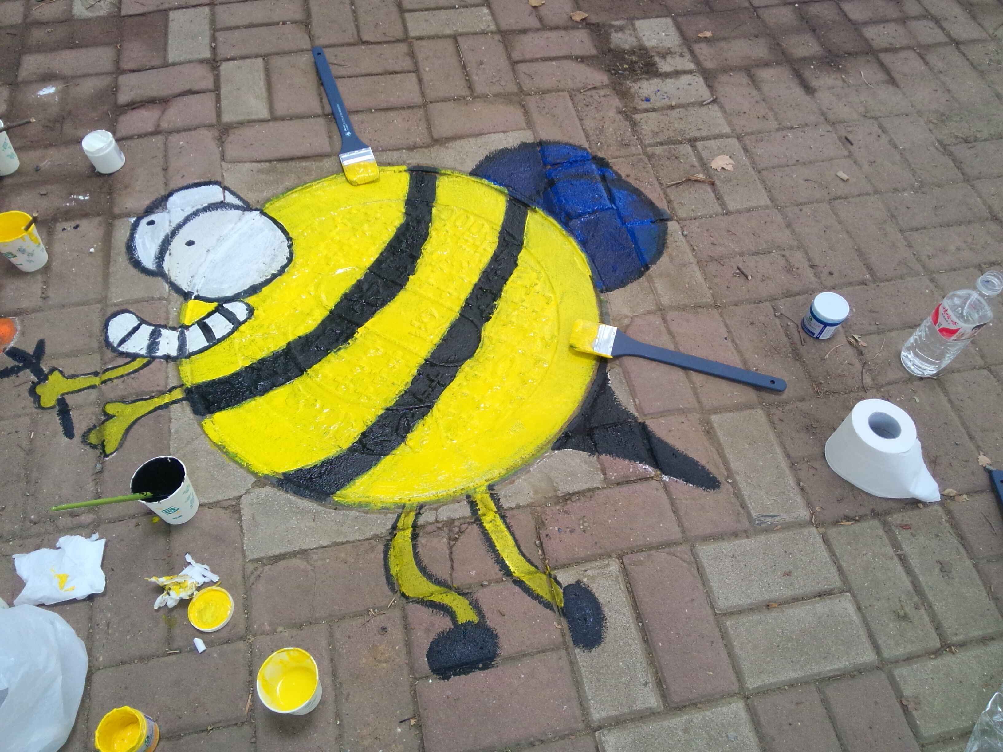 这些作品都是员工自己动手绘制,用的是丙烯颜料。员工在创作时,很好地利用了窨井盖的形状,巧妙掩饰了窨井盖冰冷的面孔,增强了员工对校园的热爱。