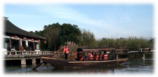 为引导广大党员坚定党的理想信念,不断增强党员队伍的创造力、凝聚力和战斗力,11月28日,应用物理党支部开展了“红色情怀•革命信仰”主题党日活动,组织党员教师前往常熟沙家浜参观学习,共同瞻仰红色遗迹、缅怀先烈遗志、追忆革命历史,接受红色教育。沙家浜具有光荣的革命传统。抗日战争时期,叶飞率领新四军六团以“江抗”名义东进江南,利用阳澄湖地区万亩芦苇荡作为天然屏障,开展艰苦卓绝的抗日武装斗争,开辟了敌后抗日游击根据地。湖荡中菱荷相间、芦苇密布,党员们乘坐着古色古香的画舫穿行在芦苇迷宫中,遥忆着抗日英雄们与敌人斗智斗勇,感受着先辈们当年艰苦的战斗生活。岸上根据抗日战争时期建造的江南小村庄、沙家浜革命传统教育馆、新四军活动旧址等,依稀让人瞥见阿庆嫂、郭建光的身影,记忆中那“芦苇火种”的故事似乎触手可及,令人遐想、耐人寻味。大型实景剧“让子弹飞”幽默地再现了那段军民鱼水情深的抗日斗争史,党员教师们都看得津津有味,同时大家的政治热情被革命先辈们树立起的共产党员的良好形象激起,深感光荣和自豪,大家切身接受了一次深刻的革命传统教育。