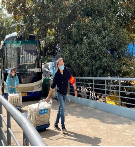辅导员坚持“以生为本”,24小时不断线服务,解决同学们的急难愁盼,安抚员工情绪。张文闻老师主动担负起景星苑封控宿舍楼员工送餐任务,保障封控区员工的正常生活;杨德旭、张文责、盛天祺老师每天接送腿脚扭伤的同学完成核酸检测;江昕玥老师第一时间赶往丁家桥,为丁家桥校区同学配送物资安抚情绪。