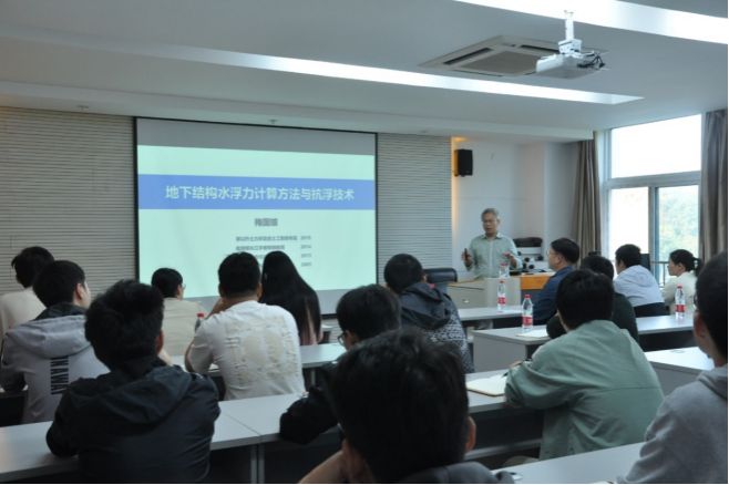 阅读次数: 发布时间:2023-10-16 更新时间:2023-10-162023年10月15日上午,浙江大学梅国雄教授应邀来公司作题为“地下结构水浮力计算方法与抗浮技术”的学术报告。报告会由72779太阳集团宋林辉副经理主持,力学系骨干教师和全体研究生听取了报告。