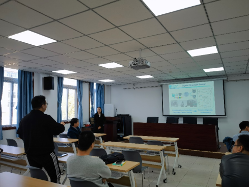 在“后锂离子时代”,发展高性能新型电池技术具有重要的战略意义,也是当下电化学储能领域的重大需求之一。邱静霞教授在报告中从电极材料的电极微观结构调控出发,探讨了离子在电极材料中的传输与存储机制,并介绍了如何利用相关理论指导高功率电池电极材料的设计与制备。报告内容精彩纷呈、生动有趣,让大家对于电池材料制备及应用有了深入的认识。报告结束后,邱静霞教授与参会师生就相关学术问题进行了深入交流。
