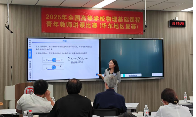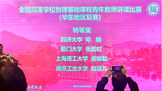 5月30日,2025年全国高等学校物理基础课程青年教师讲课比赛华东赛区复赛举行,比赛设特、一、二等奖若干。比赛选手是通过华东区六省一市的高等学校物理基础课程青年教师讲课比赛选拔出来的各省(市)一等奖获得者,每省(市)推荐2名。比赛内容涵盖2023版《理工科类大学物理课程教学基本要求》中的A类要求(74个知识点),讲课时间20分钟,评委提问8分钟。内容覆盖广,环节要求严,获奖门槛高、难度大,十分考验参赛教师的教学基本功和综合素质。