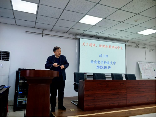 阅读次数: 发布时间:2025-11-27 更新时间:2025-11-27数理学院第41期数理论坛于2025年11月25日上午在笃行楼316报告厅举办。西安电子科技大学教授、博士生导师、国家级教学名师、国务院政府特殊津贴获得者刘三阳教授,应邀为数理学院教师带来了题为《关于建课、教课和赛课的管见》的专题报告。