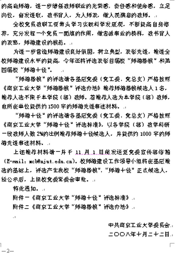 接学校通知,拟在全校开展“师德十佳”和“师德楷模”评选活动,具体情况详见本通知后所附的学校有关文件。