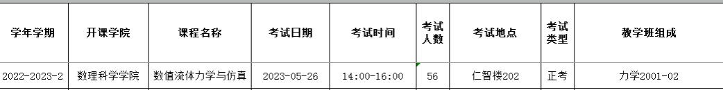 力学自排考试《数值流体力学与仿真》安排