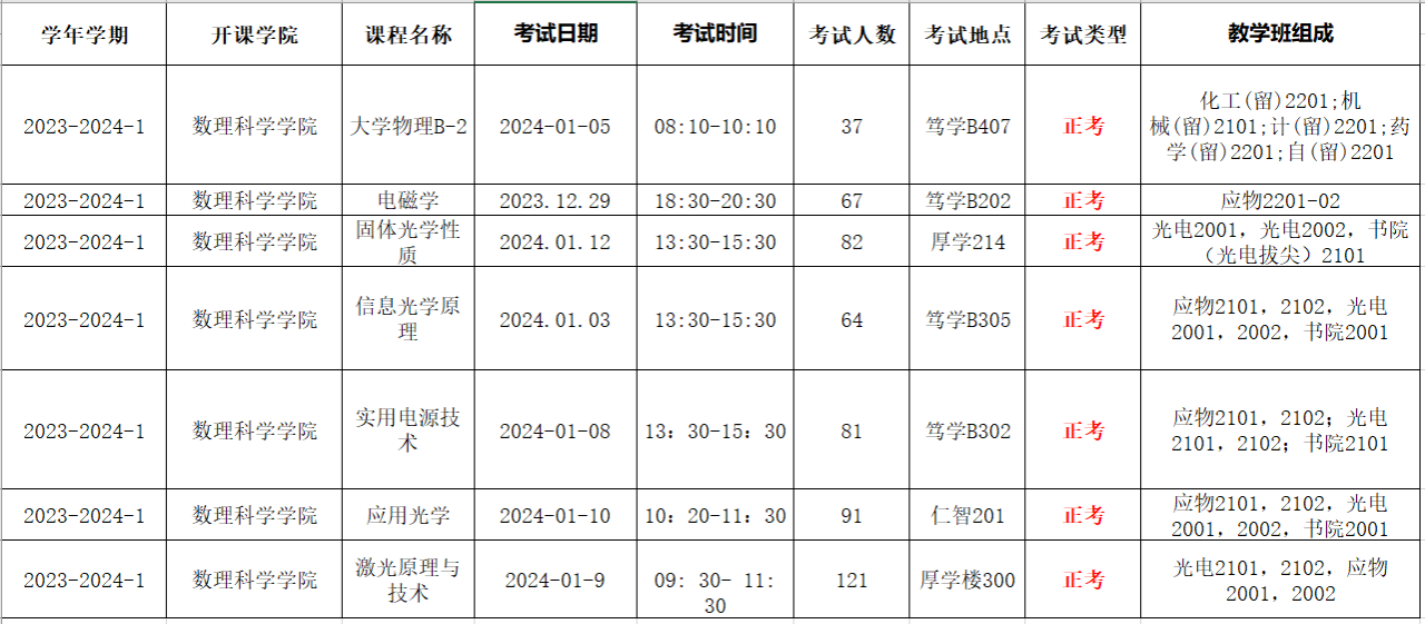 2023-2024学年第一学期-72779太阳集团物理系专业课考试信息