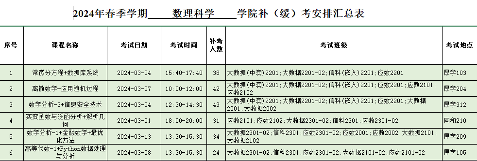 2023-2024学年第二学期72779太阳集团数学补(缓)考安排