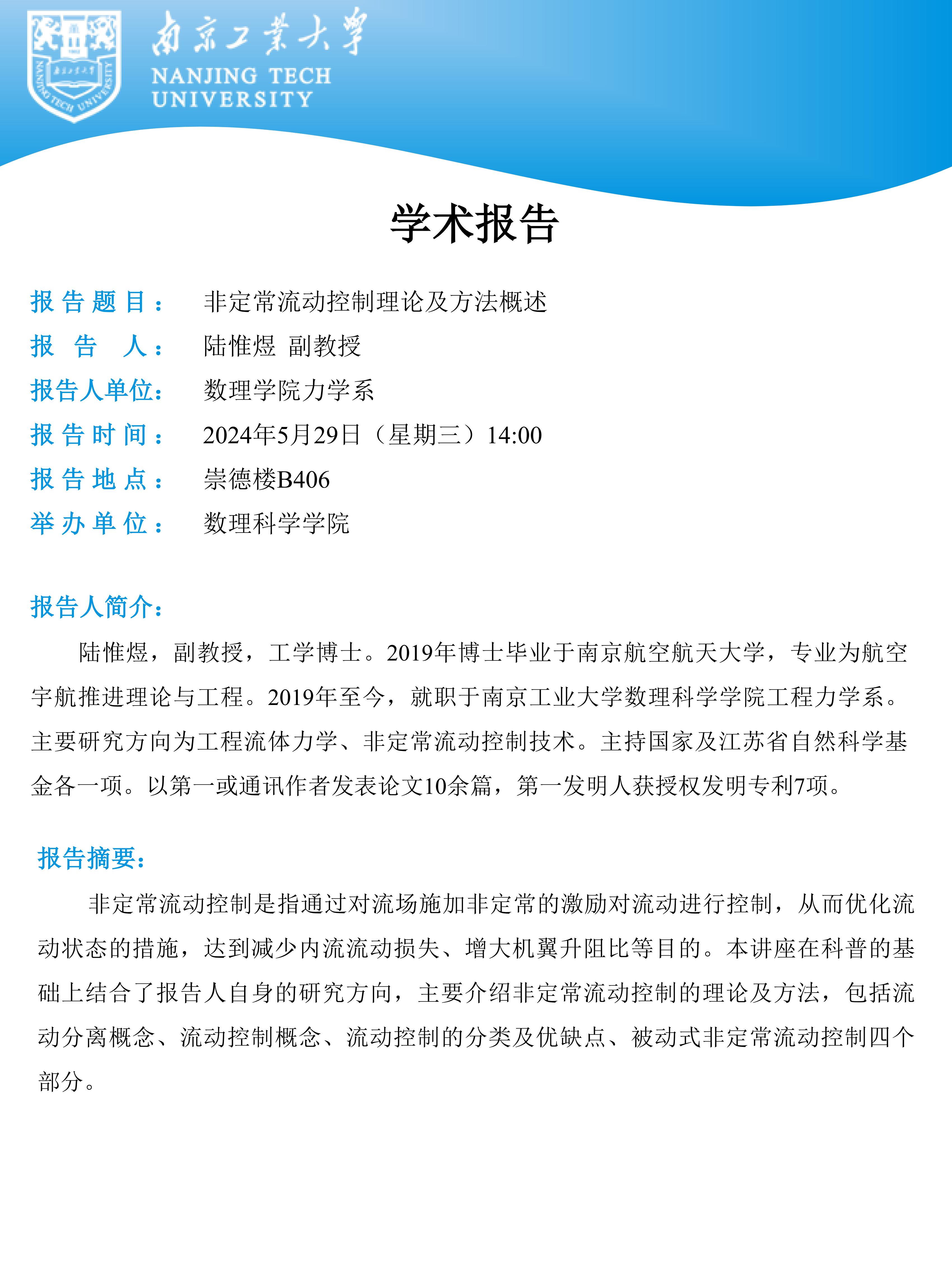 数理论坛第二十一期:陆惟煜副教授做学术报告