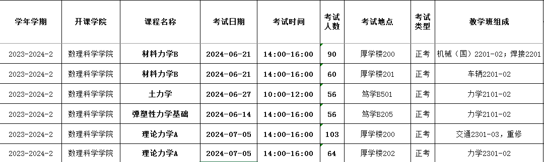 2023-2024-2力学系自排考试安排2