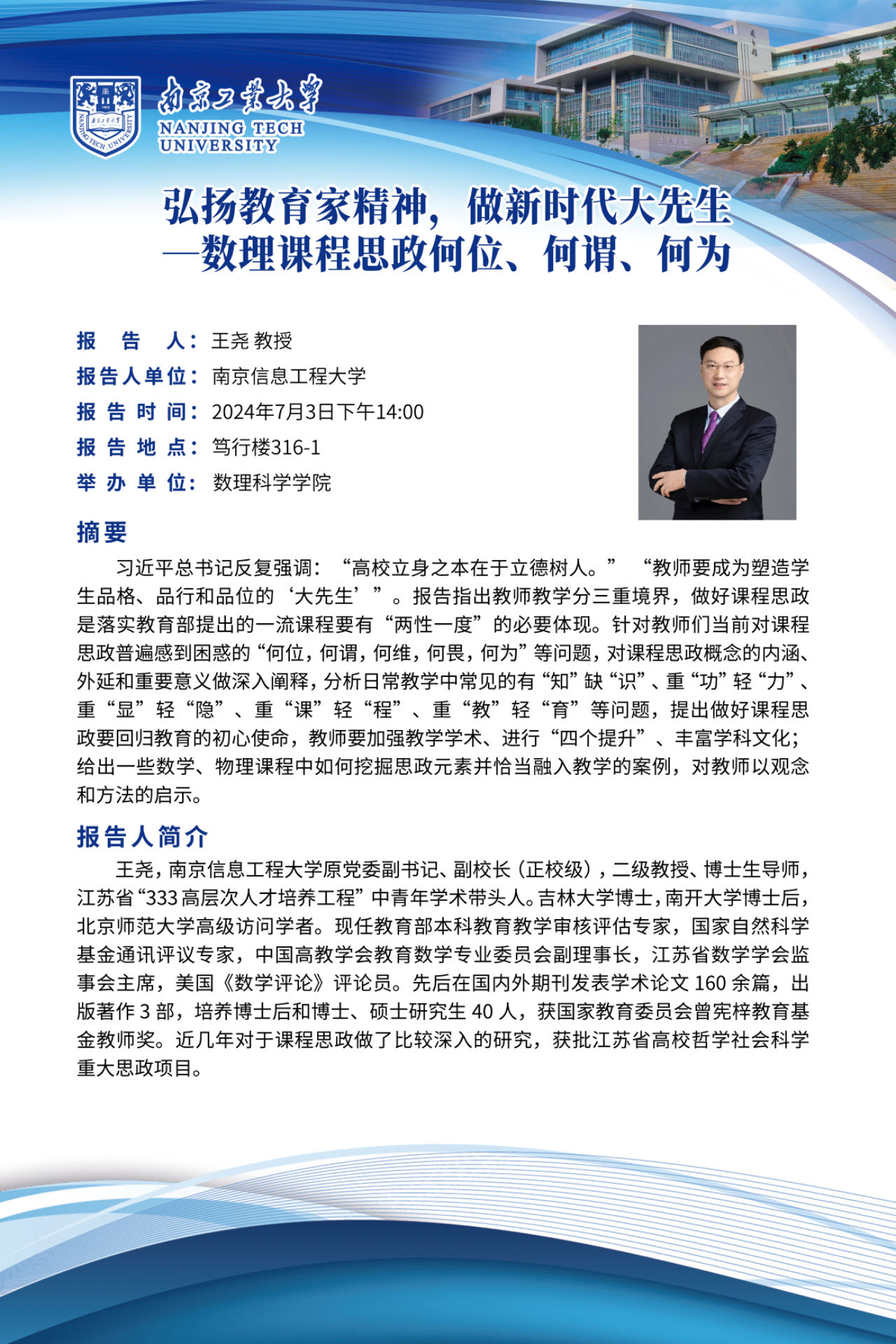 数理论坛第二十六期:南京信息工程大学王尧教授做报告