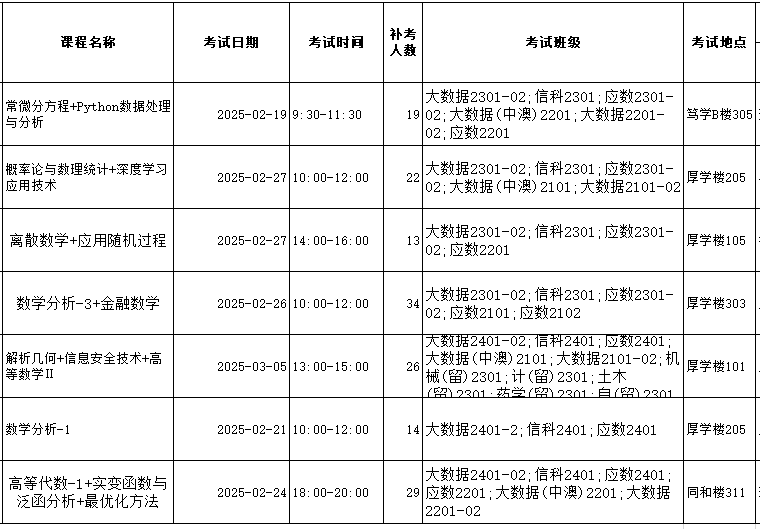 2024-2025-2数学系自排补考