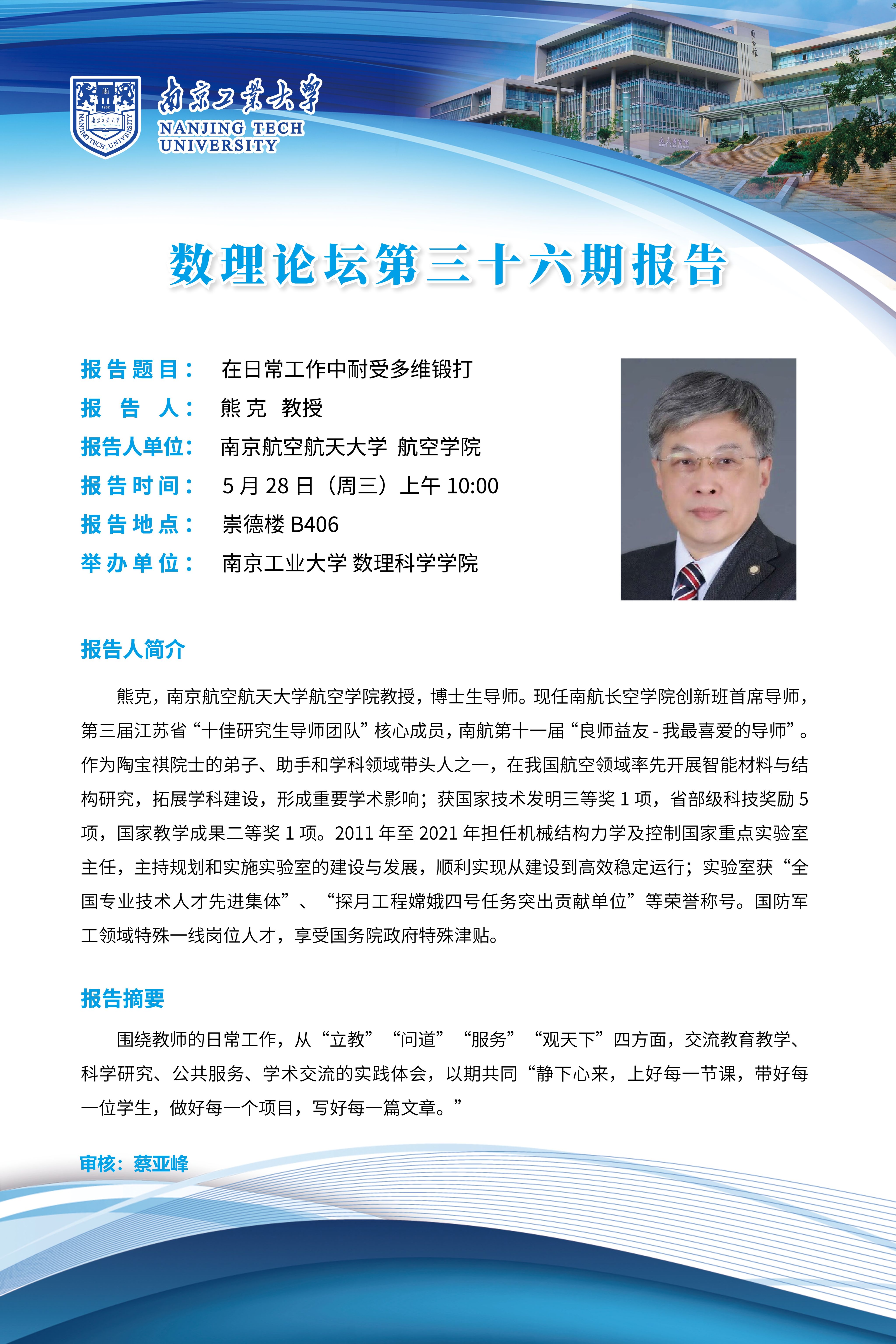 数理论坛第三十六期:南京航空航天大学熊克教授做学术报告