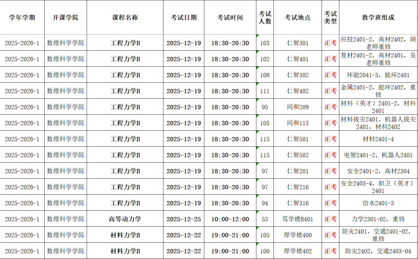 2025-2026-1 力学自排考试安排(1)