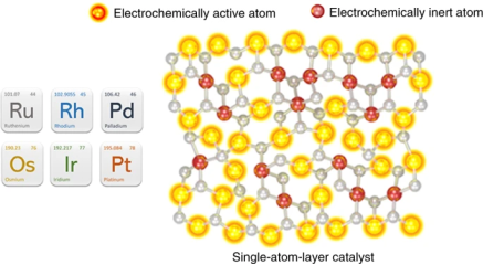 合理设计贵金属催化剂,并提高其利用率对工业应用来说至关重要。当前,具有高活性和选择性的贵金属催化剂(如铂、钯等)常被用于电解水产氢、燃料电池和空气电池等能源领域。然而,地球储量稀少(如铂地壳含量仅为亿分之五)和成本高昂(如铂200-250元/g)阻碍了贵金属催化剂的大规模应用。以汽车市场为例,为了满足燃料电池系统的成本控制需求,电池中的Pt含量已从2018 年的0.117 g/kWgross 减少为2020 年的0.108 g/kWgross,预计在2025 年将降至0.064 g/kWgross。因此,如何提高贵金属利用率是当前研究的主要方向。贵金属纳米化是提高其利用率并降低重量负载的有效通用策略。目前,已有各种各样的贵金属纳米结构被报道,从大的三维的多孔结构、二维纳米片结构,一维的纳米线,到小的零维的纳米团簇乃至单个原子即单原子催化剂。照此趋势,贵金属的利用将最终演变为单原子层催化。即,几乎所有的贵金属原子都有可能作为活性位点参加反应。