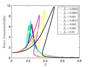 进一步地,陈腾飞等研究了该结构在非额定载荷下的动力学特性。研究发现,由负载变化引起的平衡位置偏移,会引起该结构刚度明显增大,并出现强烈的非对称性,严重影响隔振性能。为此,在研究中引入对部分结构参数的优化,以消除负载变化带来的负面影响。该工作以“Study on a quasi-zero-stiffness isolator for variable mass load”为题发表在Applied Mathematical Modelling期刊。