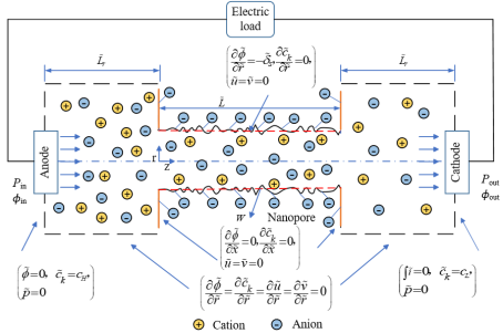 图1 基于随机形状纳米通道的反电渗析能量转化系统