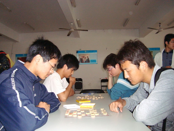 阅读次数: 发布时间:2009-04-29 更新时间:2018-12-07比赛本着友谊第一的原则,以加强同学之间的交流并且锻炼了同学们的思维为目的,培养大家“手中有棋,心中有局”的能力。本次比赛包括中国象棋,五子棋,军棋和益智拼图等项目,广大同学都积极地参与到了活动中。其中参加中国象棋比赛的同学最多,竞争尤为激烈,选手们个个眉头紧锁,沉着应战,比赛过程中对弈的选手往往陷于胶着,令观众焦急万分,欲言又止。五子棋的比赛相对轻松了许多,选手们在下棋的过程中时而为自己的失误感到惋惜,时而为对手的明智之举连连叫好。围观的同学屏息凝神,安静观战。拼图比赛现场,选手们发挥团队精神,各司其职,齐心协力,努力地在有限的时间内完成自己的拼图。