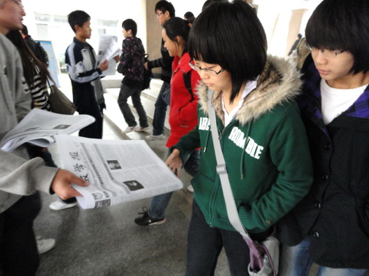 太阳集团《数学报》是由校团委主办、理学院分团委,理学院老员工科协承办的一份数学类刊物。为了让更多的同学阅读本期数学报,组织者采用了多种方式发放,一方面通过校其他科协,发放到各个兄弟学院;另一方面则在厚学、同和等教学楼,组织发放报刊。同学们的反应很积极,不少同学主动要求领取,有的同学甚至当场就开始阅读起来。