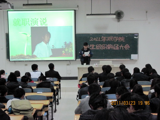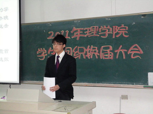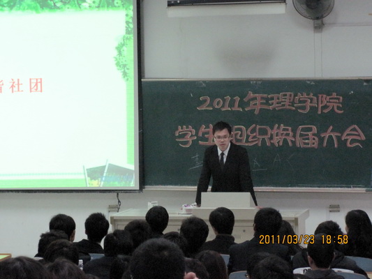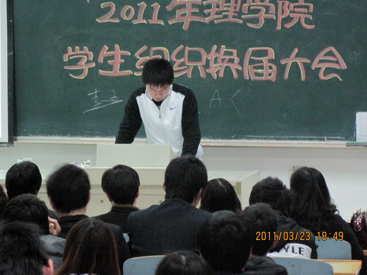 最后,老师们走上讲台,与同学们合影留念,在热烈的掌声中,2011年理学院员工组织换届大会圆满落幕。