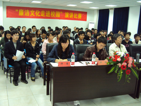 阅读次数: 发布时间:2011-11-11 更新时间:2018-12-07为了深入开展廉洁文化教育活动,促进和谐校园建设,加强老员工的廉洁意识,提高老员工的语言表达能力,理学院从2011年10月17日至10月31日举办了“廉洁文化 走进校园”演讲比赛。