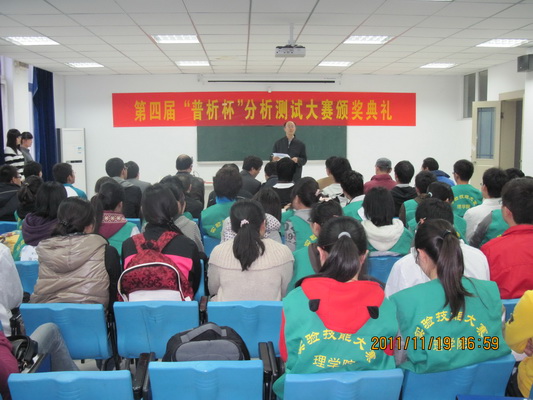为激发员工的创新意识,提高员工的分析测试技能,培养他们扎实掌握和灵活应用化学知识的能力,2011年10月20日起,由北京普析通用仪器有限责任公司赞助,校员工处、校团委、教务处、资产与实验室管理处主办,理学院分团委承办的第四届“普析杯”分析测试大赛在公司正式启动 ,经过近1个月的初赛选拔,决赛于11月19日进行,并于比赛结束后举行了颁奖典礼。