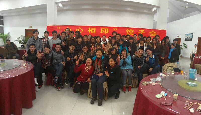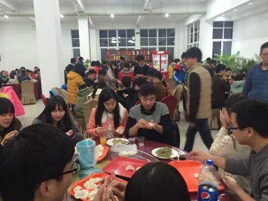 在包饺子的过程中,大家大显身手,各有各的包法,包出来的饺子也是各式各样。女同学们心灵手巧,包出来的饺子精美别致;男同学也不甘落后,不满足于传统饺子的形状,他们试着玩起新花样,顷刻间,出现了太阳花、大元宝等丰富多彩、形式各异的饺子。饺子煮熟后,大家津津有味地吃着热腾腾的饺子,经过一轮狼吞虎咽,“争抢打斗”,饺子一扫而光。最后,大家一起帮助食堂阿姨清理现场,合影留念。心协饺子会圆满成功。