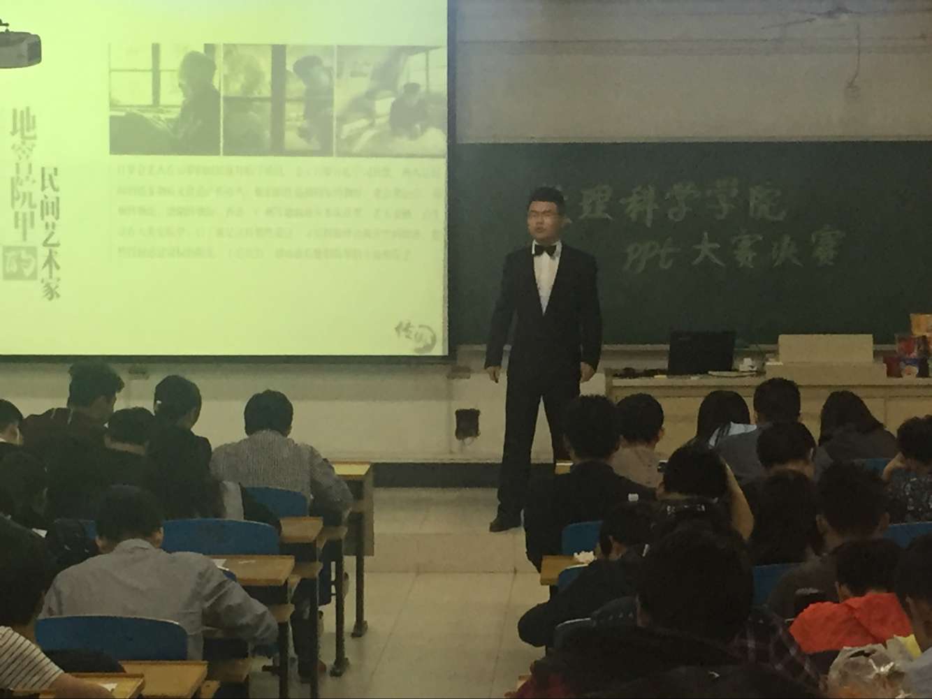 阅读次数: 发布时间:2016-04-18 更新时间:2018-12-074月15日晚6点半,72779太阳集团第一届PPT大赛决赛在厚学楼414教室正式拉开帷幕。72779太阳集团团委副书记毕清波老师,72779太阳集团学联主席徐杰、副主席董显以及来自经管学院、环境学院、法学院、化学与分子工程学院等兄弟院系的参赛选手和同学们参加了本次比赛。
