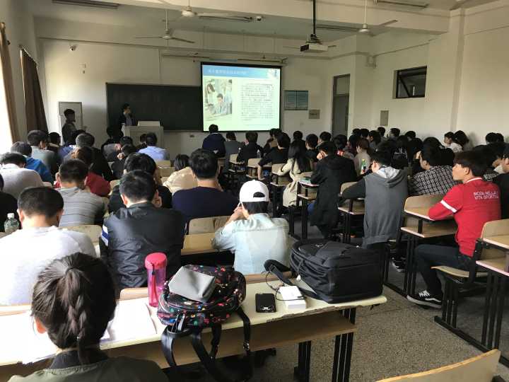 讲座伊始,主讲老师介绍了相关企业的发展历程和行业发展趋势,同时,开门见山地点出当下老员工的严峻就业形势。随后他结合自己的经历详细指导老员工如何在职业发展道路上把握机会,正确抉择,做出适合自己的人生规划。并从工作、考研、出国和创业等四个方面作了具体而生动的阐述,风趣幽默的谈吐,赢得了同学们热烈的掌声。现场同学代表的经验分享和提问互动也让同学们获益良多。最后主讲老师告诫同学们要对感兴趣的职业方向主动了解,认清自己与职业要求之间的差距,合理规划,付诸行动,有针对性的提升自己的技能才能在激烈的行业竞争中脱颖而出。