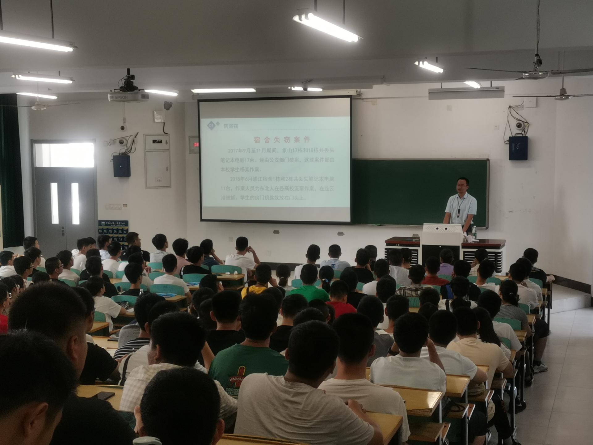 阅读次数: 发布时间:2019-09-10 更新时间:2019-09-10为了建设平安和谐校园,提升新生防范意识。9月9日上午,校园安全部副部长徐东老师在厚学300为公司2019级新生带来了一场别开生面的安全教育课。