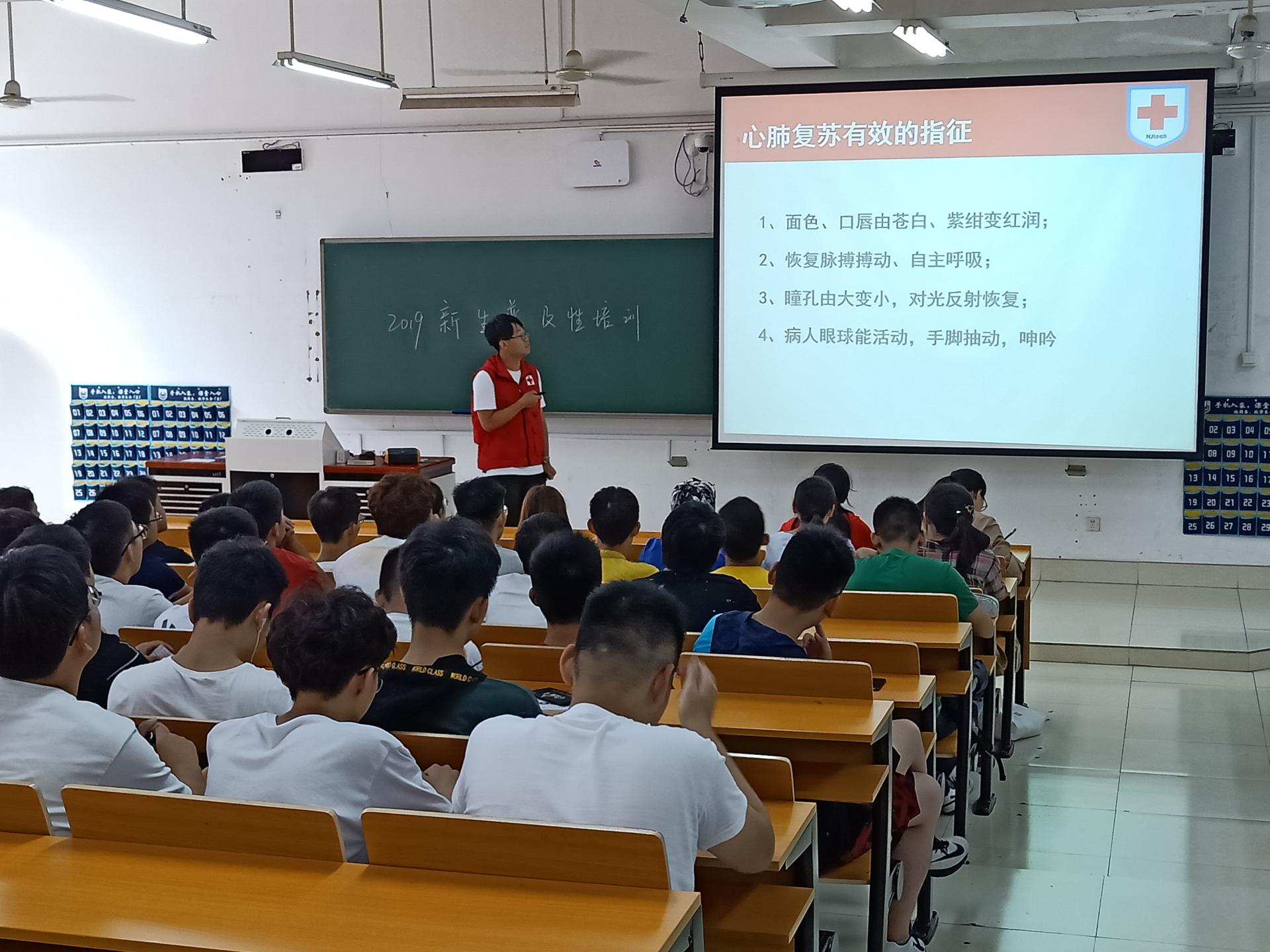 培训开始,先由应急救护理论课的老师为新生们进行讲解,介绍了红十字的起源以及太阳集团红十字的发展历史,并展示了学校红十字的获奖情况。培训中,徐振霞老师以通俗易懂的语言讲解了心肺复苏、创伤急救和气道异物梗阻等突发事件时的救护常识。为了让参加培训的学员更好地掌握相关的急救技巧,培训师给大家演示了心肺复苏的全真模拟场景,讲解结束后,徐振霞老师还邀请学员现场模拟心肺复苏抢救,并对抢救细节、手法等进行指导修正。除了一些紧急救护知识的介绍和现场模拟急救培训,徐振霞老师又针对宿舍毒虫叮咬,军训期间突发中暑等各种紧急情况提出了一些简易的处理办法。军训即将到来,难免会有擦伤或蚊虫叮咬,希望大家都能学以致用。