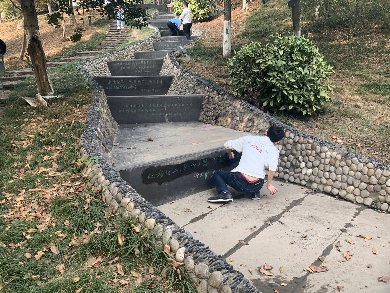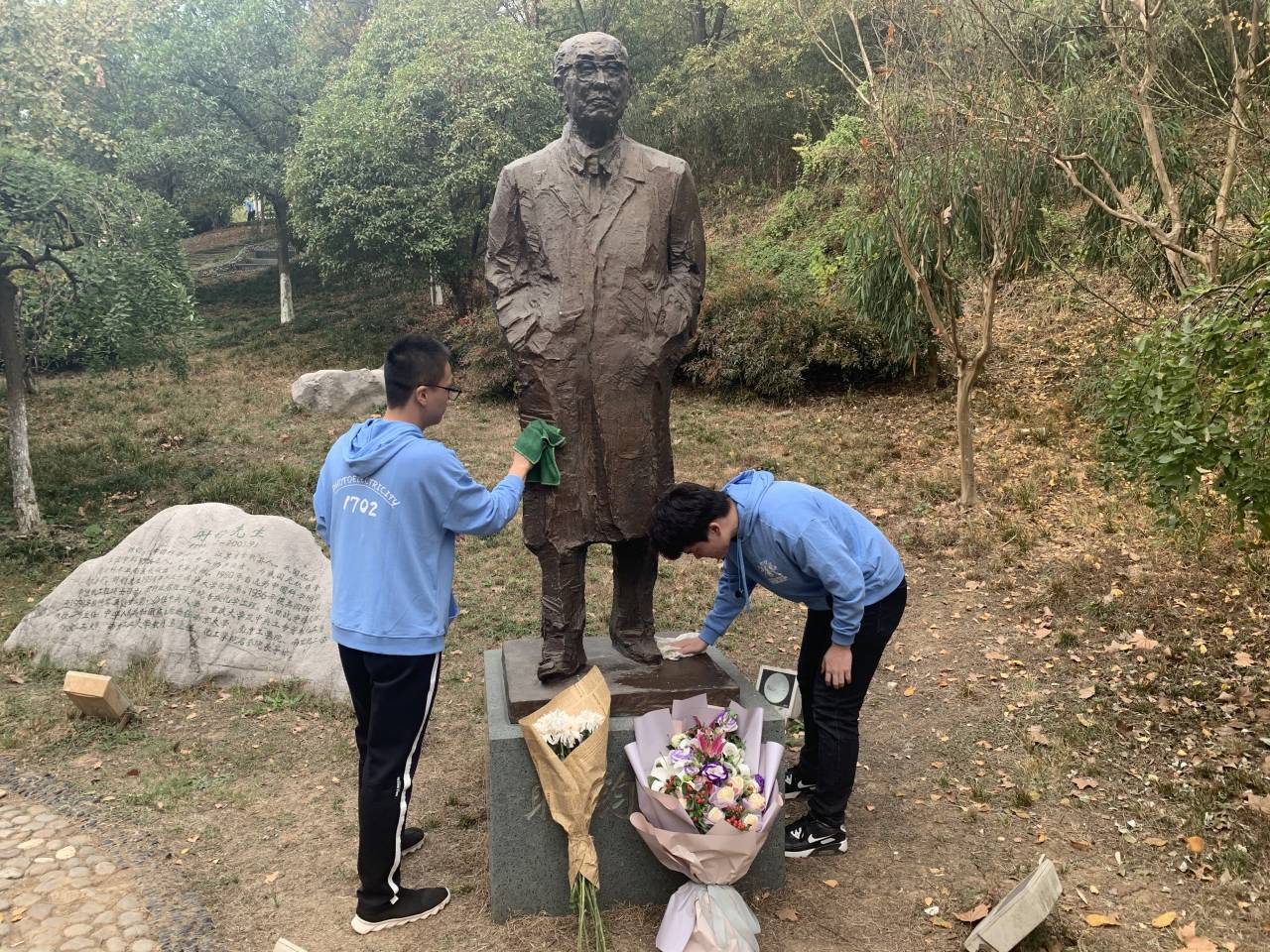 本次活动主要分三个环节,光电1702团支部25个同学参加。首先由团支书黄旭同学简单介绍了时钧先生的生平和贡献。随后,由班长李润华同学分配打扫工作并宣布活动正式开始,各组积极完成自己的分配任务,清扫落叶,擦拭时钧先生塑像等。最后,同学们再次集合在时钧先生的塑像前的喷泉广场,各组选派代表畅谈本次活动的感受,同学们对时钧先生的敬仰之情溢于言表,爱国主义情感得到升华。
