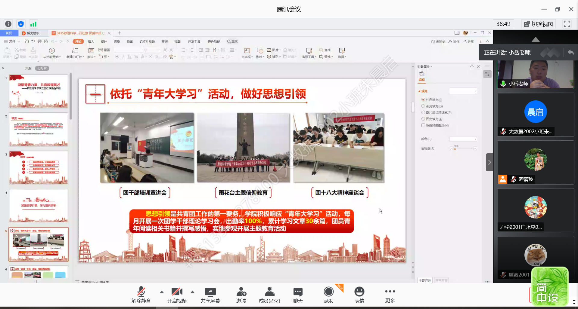 阅读次数: 发布时间:2020-09-15 更新时间:2020-09-17为迎接2020级本科新生,9月14日上午10点,公司通过腾讯会议线上方式开展团学辅导讲座,本次会议由院团委书记毕清波老师主持,院团委副书记岳鹏老师主讲。