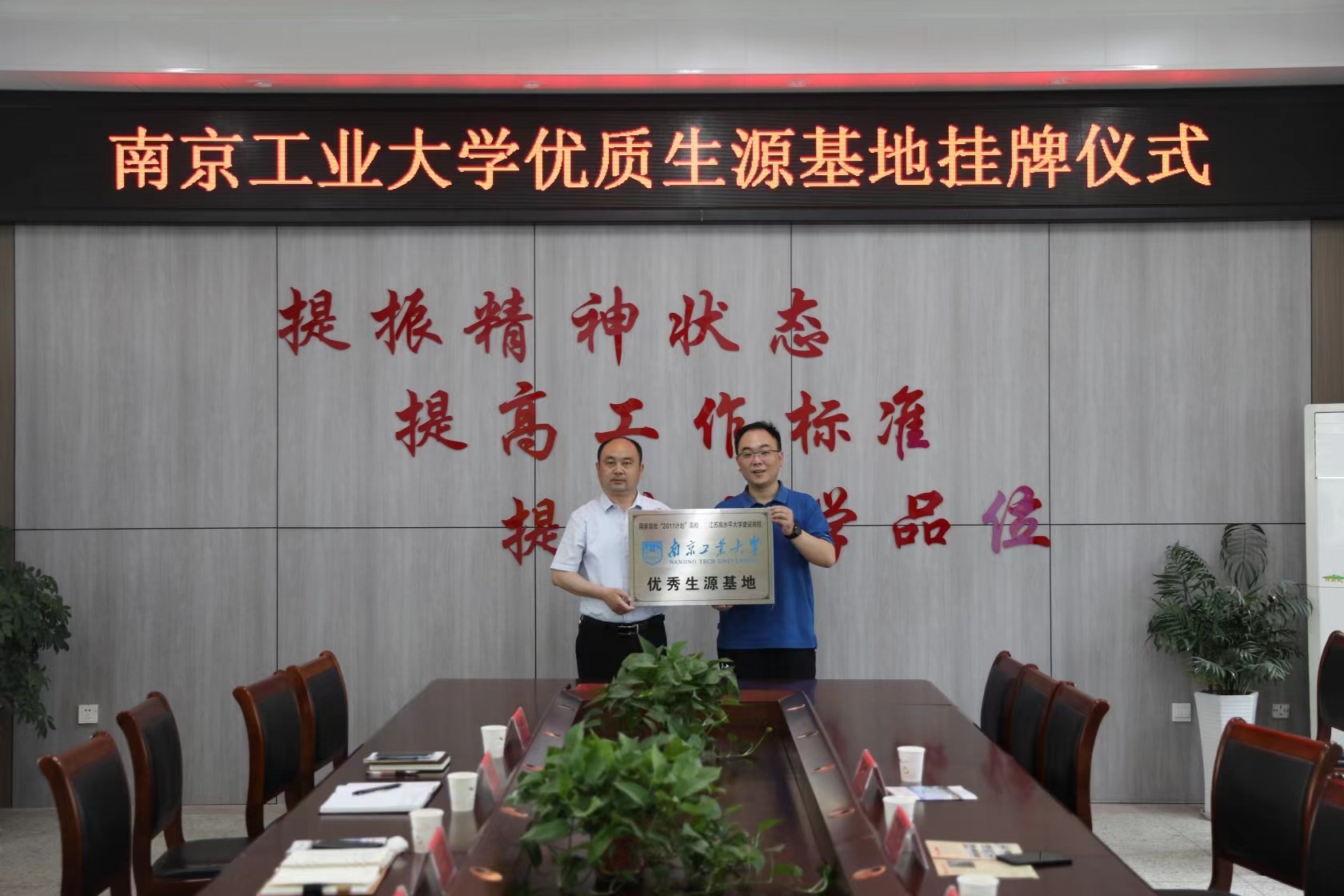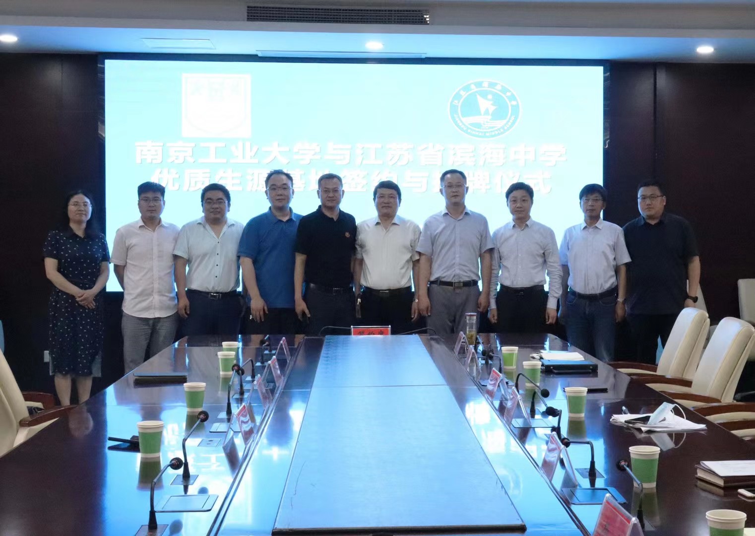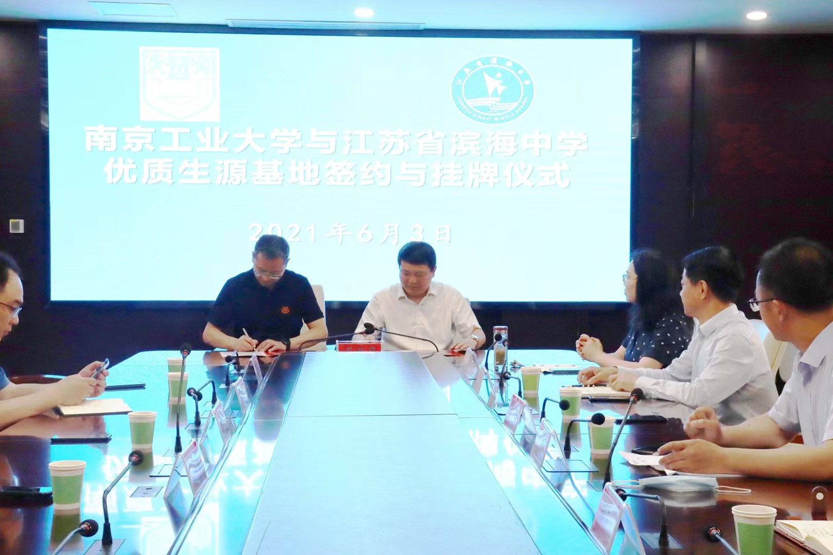 在滨海中学授牌签约仪式上,陆建董事长对公司一行到来表示热烈欢迎,希望通过优质生源基地共建,进一步加强两校资源共享与人才合作。在响水中学授牌签约仪式上,张大春董事长结合学校近年来高考录取情况表示,响水中学员工高考成绩与南工大分数段高度契合,希望通过暑期夏令营等活动,让员工实地感受南工大的雄厚实力和人文底蕴。马树建副经理对两所学校多年来为公司输送大批优质生源表示感谢,详细介绍公司新高考改革下的招生政策及优势学科的办学特色和人才培养模式,并热诚欢迎两所学校师生走访南工大。