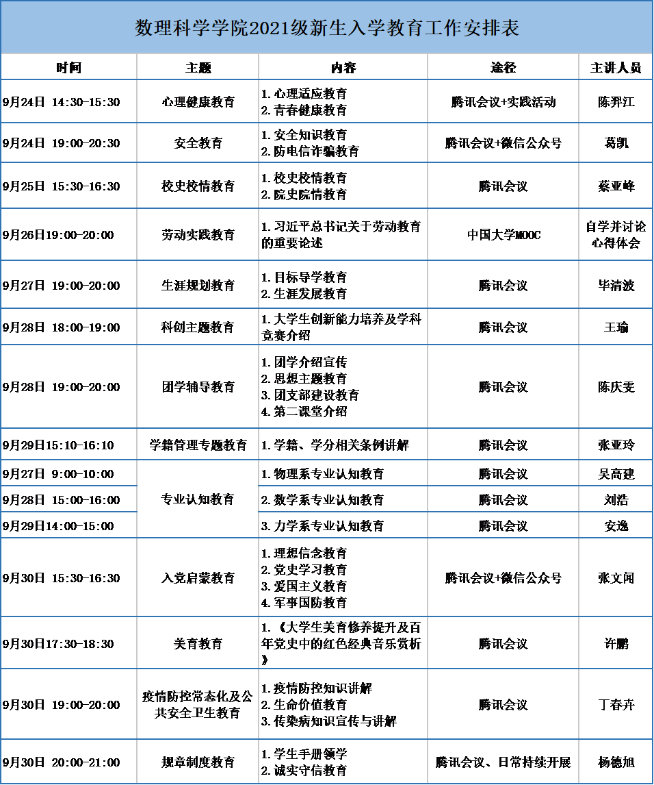 阅读次数: 发布时间:2021-09-27 更新时间:2021-09-27伴着飒飒秋风,我们迎来了怀揣梦想的2021级新同学。为帮助2021级萌新坚定理想信念,尽快适应老员工活,融入到72779太阳集团这个大家庭中。公司秉承“爱与服务”的工作理念,举办一系列新生入学教育活动。具体安排如下:
