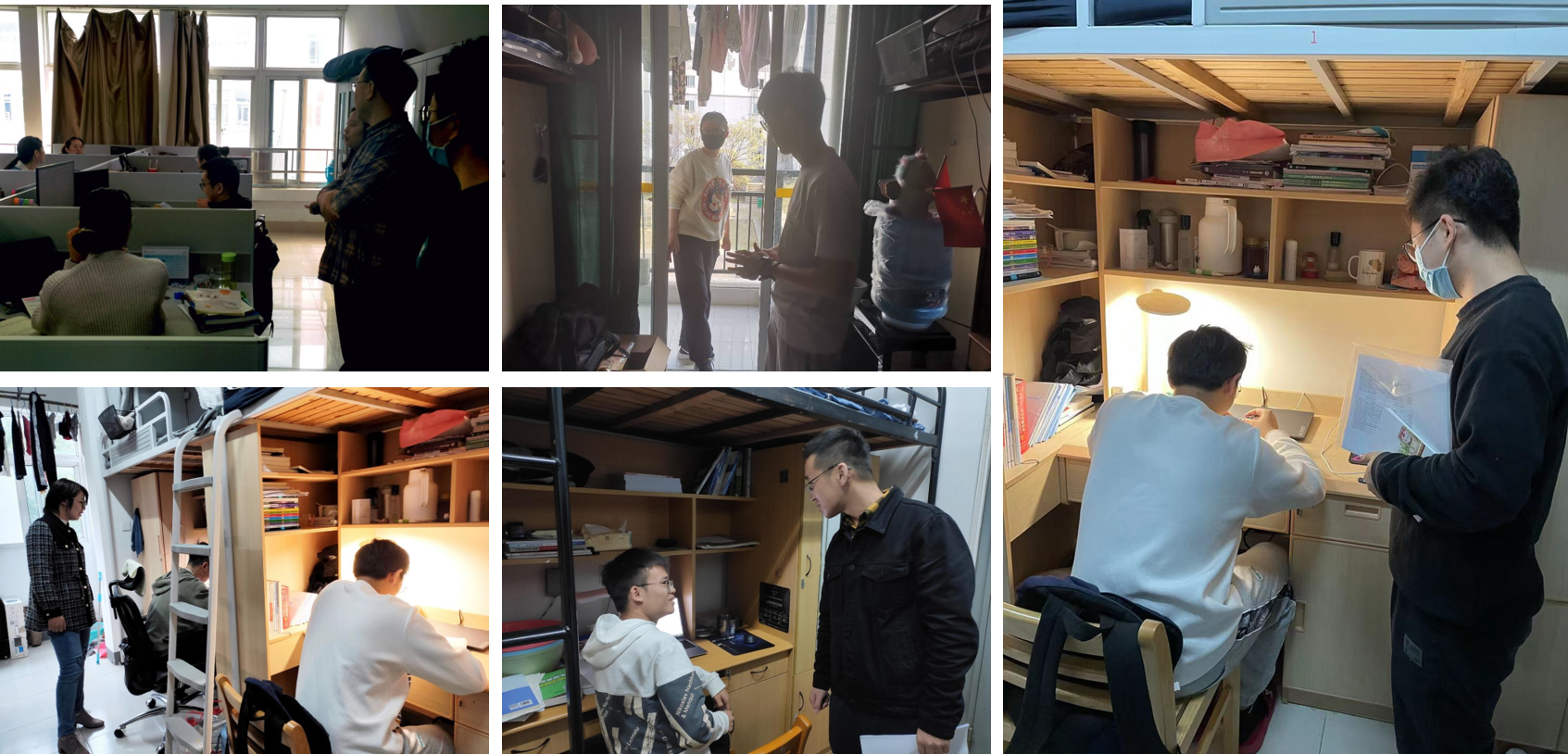 在走访宿舍过程中,老师们与同学们亲切交谈,关心同学们返校后的生活、学习等方面是否有困难,鼓励同学们优化时间安排,认准学习目标,制定好长短期规划,并就宿舍卫生与安全进行叮嘱,要求同学们要坚守安全底线,筑牢安全防线。并将宿舍管理的相关规定、人身财产安全的相关提醒一一传达给员工,同时提醒员工对于违反宿舍安全、用电等规定,学院将进行严肃的批评教育。